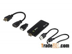 The little computer runs Google Android 4.2 and it’s designed to be plugged directly into the HDMI port on a TV. You can hook up a mouse and/or keyboard to navigate through the Android interface.